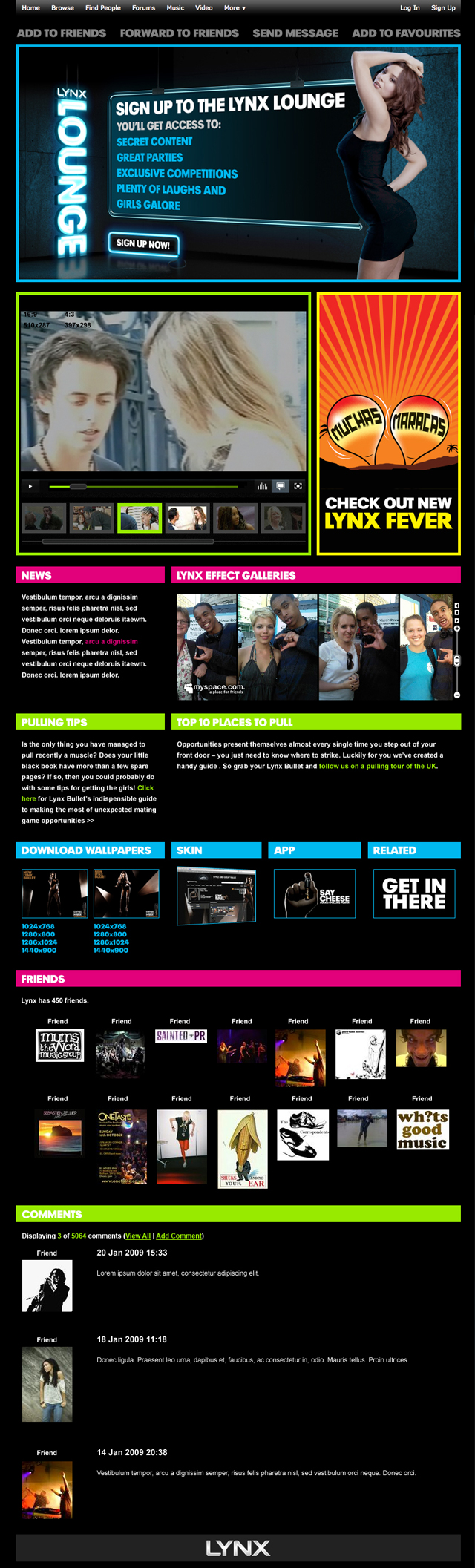 Private members area of the Lynx Effect website, the Lynx Lounge. Art directed from the initial pitch and concept design through to the shoot, CGI specification and oversight, to compositing and final assembly in Flash.